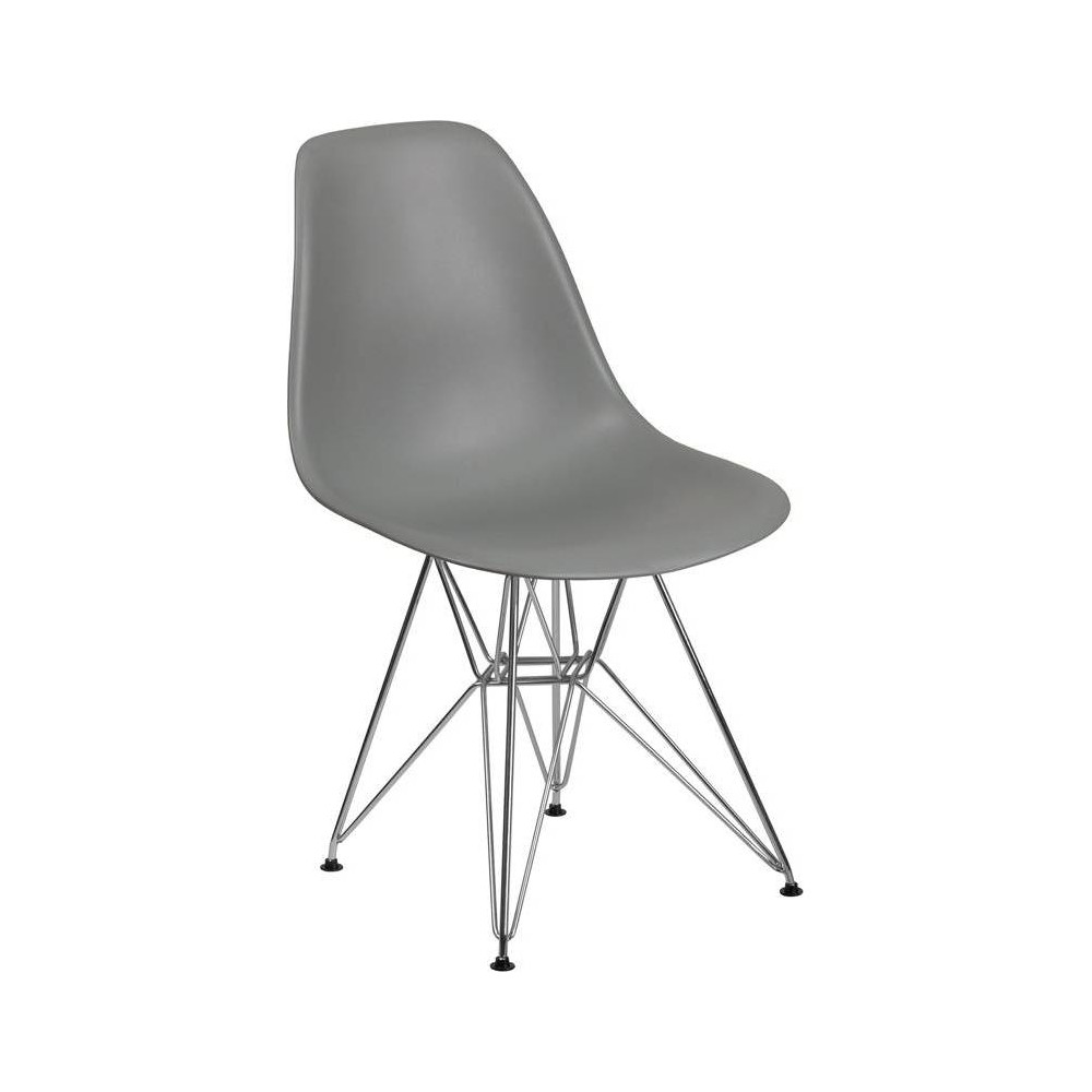 Elon Series Plastic Chair Moss : Rejuvenate your home with modern seating that will be a lovely addition as an accent chair in your living room, den, library or sitting room. This chair will add an attractive statement in your kitchen or dining room. Bring your office space or waiting room back to life by using multiple colors throughout your space. The smooth contours of the chair conform to your body allowing you to sit comfortably. The durable matte plastic molded chair and geometric chrome base add an artistic appeal. Pattern: Solid.