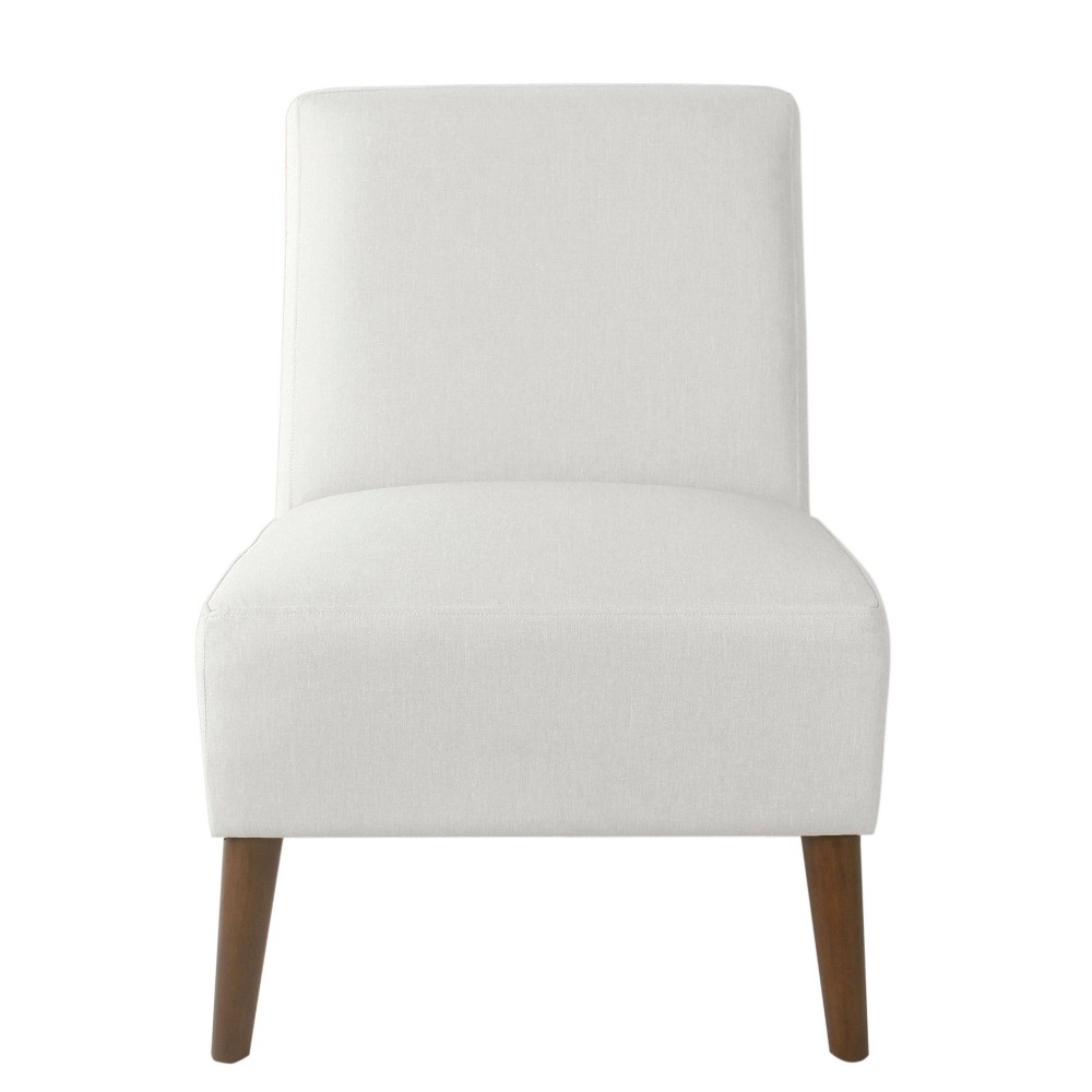 This Modern Armless Accent Chair features a cream woven fabric with mid-tone walnut finish that will complement a variety of home décor styles. Use it as a side chair in the living room, as an accent chair in the bedroom. This armless chair is easily moved to accommodate a variety of needs. Easy to assemble and maintain with spot cleaning as necessary. Pattern: Solid.