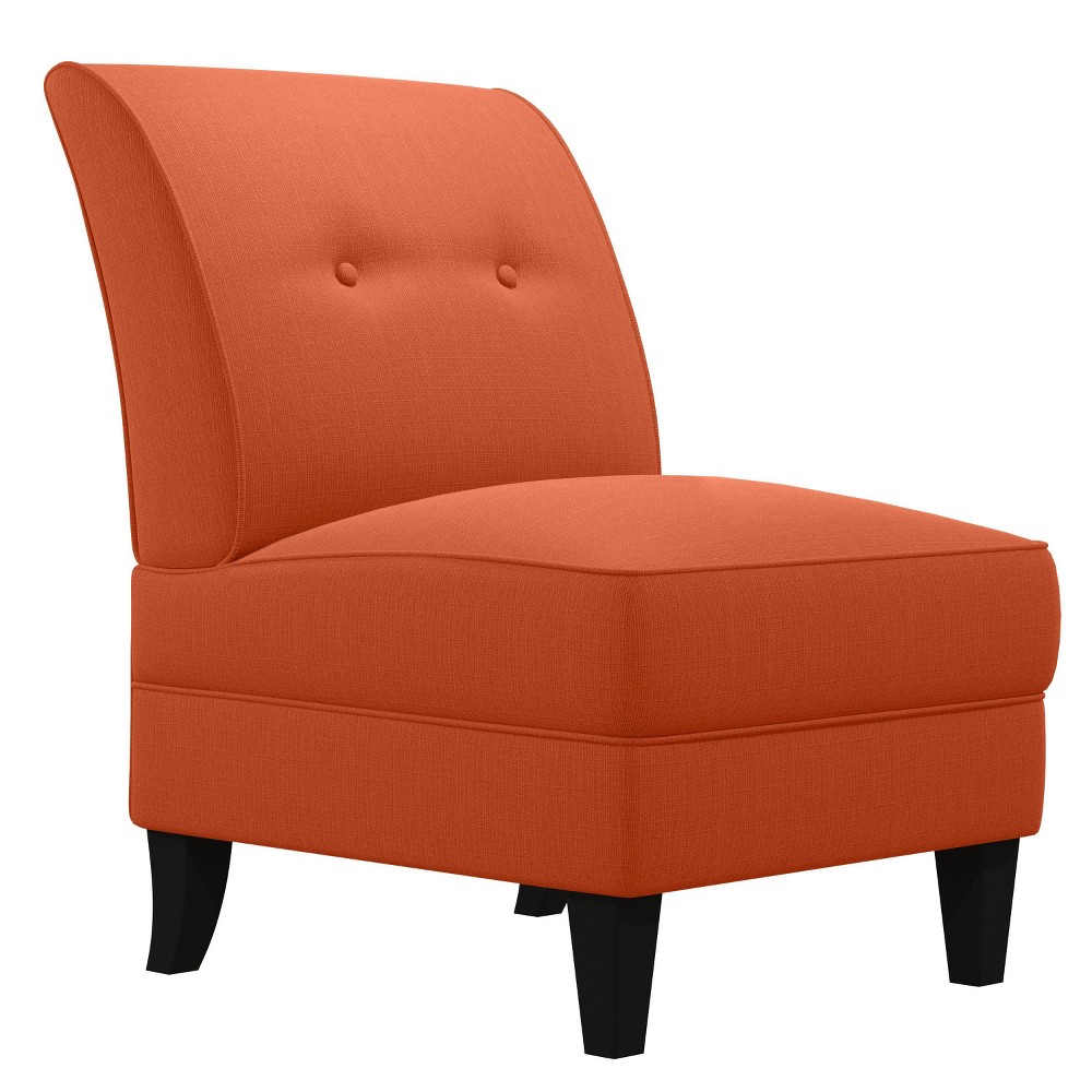 George Armless Chair Vibrant Orange : Looking for a stylish chair for your home that is comfortable too? This George armless chair boasts an updated transitional design that will elevate your home. The chair features a slightly angled back with a button tufted design, sinuous springs and a thick foam cushion for extraordinary comfort. Ideal for small spaces, this chair works great in offices, bedrooms, rec. room or living rooms. Pattern: Solid.
