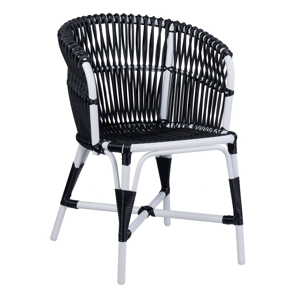 The Martina outdoor low-back dining chair is both attractive and unique in its design. The chair comes in a classically bold look of black and white, and it will help your outdoor space pop with its interesting and intricate design. Rattan makes this chair comfortable and durable, so it will hold up in all weather conditions. Pattern: Solid.