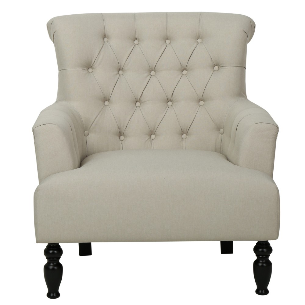 Bernstein Fabric Club : The Christopher Knight Home Berstein Fabric Club Chair has an elegant shape and style you will love. This armchair has a high back for comfortable support and a wide seat with plenty of room to relax in. The buttoned tufted back and spindle legs gives this chair a traditional look. Place it in your living room as an extra seat or build a quiet retreat in your bedroom with the addition of this chair. This Christopher Knight Home Berstein Fabric Club Chair is an eye catching piece. Pattern: Solid.